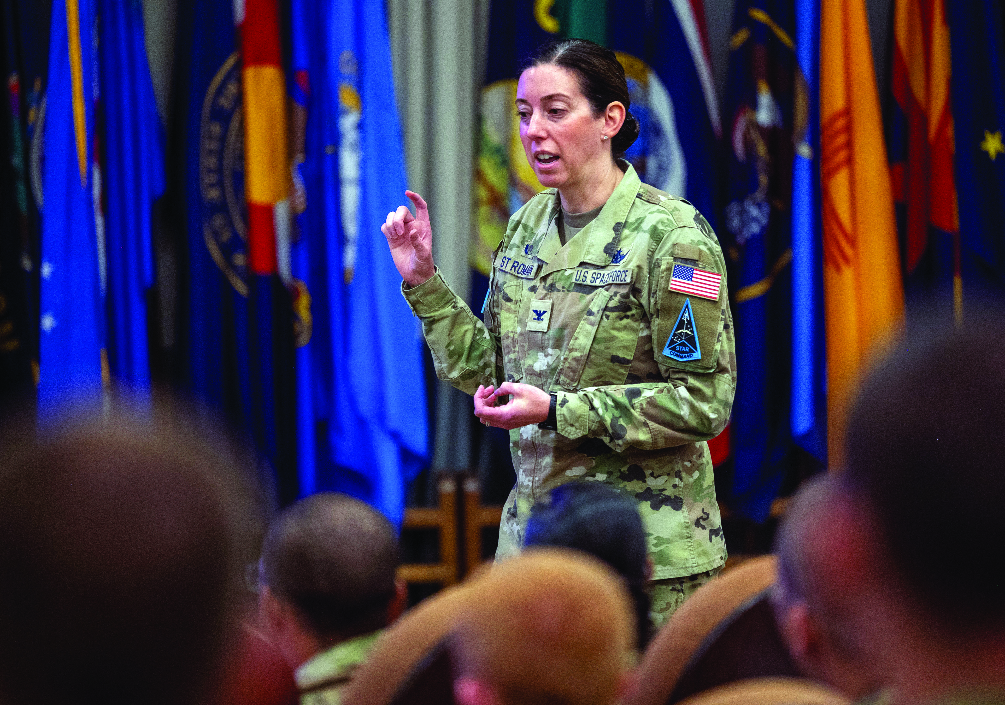 While rockets dominate the skyline, Space Delta 1 shapes something more enduring: the Space Force’s culture. Unlike traditional services producing specialists, the Space Force creates multi-disciplinary leaders who understand space, cyber, intelligence and acquisitions. “Our mission is to create our nation’s guardians,” says Col. St Romain. “They are uniquely trained from Day 1 for space operations in a warfighting domain.” The energy from these first-generation guardians keeps leaders motivated. “It’s an energy I’ve never felt before,” Col. St Romain says. “That’s what gets me up in the morning.” Capt. Devin Doyle ’20 helps channel that energy as part of Delta 1’s Commander’s Action Group. Part of USAFA’s first cohort to commission directly into the Space Force, Doyle eventually taught enlisted, officer and civilian courses. She was handpicked to develop the first-ever civilian guardian training over three proof-of-concept iterations. “Being part of the first generation is about defining what it means to be a guardian,” Doyle explains. “We’re not just transferring practices from other branches; we’re forging our own identity, values and culture.”