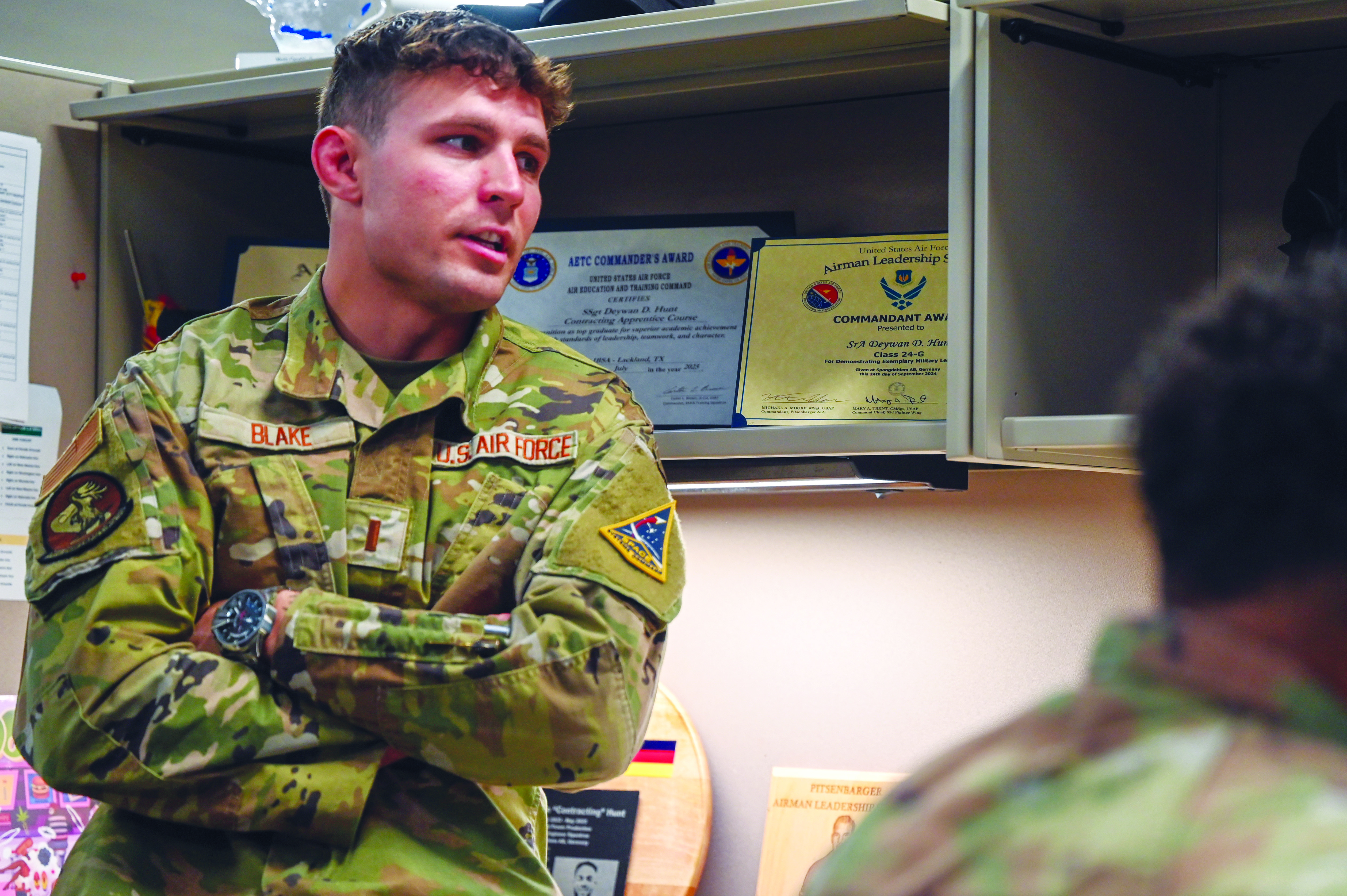 Every mission depends on support functions most never see. “I was actually the most surprised at how integrated the Air Force support functions are into space launch,” Col. Horton says. “Without the civil engineers, the security forces, the firemen, even our weather folks, we cannot launch anything.” Her diverse background — flight test, teaching, acquisitions and joint operations — brings fresh perspectives to entrenched problems. One night, as acting commander, she handled an unexpected crisis: A human skull washed up on a nearby beach along the Pacific Ocean. After determining the remains were 150 years old, the Santa Ynez Band of Chumash Mission Indians — a federally recognized tribe of Indigenous people from that region — handled them according to their customs. Environmental stewardship at Vandenberg adds complexity. Space Launch Delta 30 personnel carefully protect 16 endangered species while launching rockets weekly. Civil engineers balance these competing demands, working with federal agencies to be, as Col. Horne puts it, “good stewards of the environment while still enabling us to do all the things we must do for the nation.” Supporting this ecosystem requires expansive contracting. Second Lt. Noah Blake ’24 manages everything from sonic boom wildlife research to $800 million in infrastructure improvements. A USAFA wrestler who sells real estate and trains jiu-jitsu on the side, he credits the Academy for his ability to rapidly research unfamiliar topics. “Knowing how to do research, I can rip through different documents on Google and break things down really well,” Blake says.