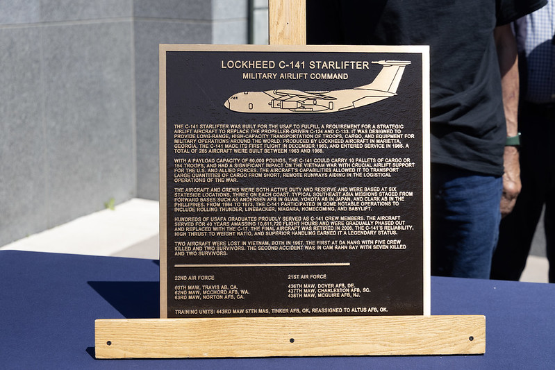 The C-141 was designed to provide long-range, high-capacity transportation for troops, cargo and equipment. Hundreds of Academy graduates served as pilots or other crew members of the plane. Several of those crew members were present for the June 9 dedication and unveiling, sharing stories about their missions and operation of the aircraft.